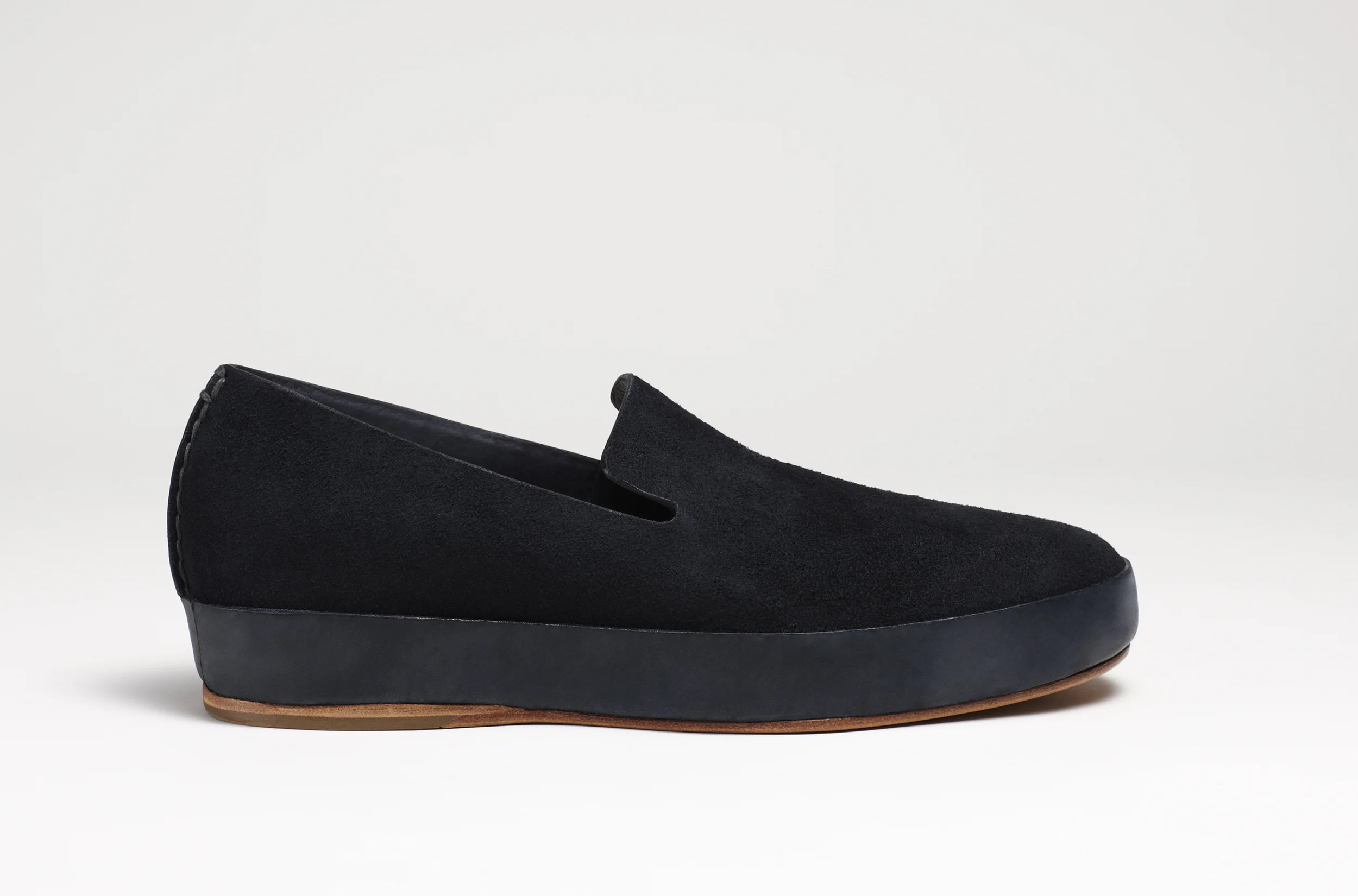 FEIT’s Hand Sewn Slipper applies a modern design to a classic summer shoe – the moccasin. Rather than hand stitching at the front, the moccasin is hand sewn at the back. Designed to be worn without socks, these shoes are uniquely constructed from one solid piece of leather. The Italian vegetable suede is tanned using only natural tannins and organic materials instead of chemical dyes and unnatural pigments. This ensures that the leather retains it’s ability to breathe and stay cool in the warm summer weather. 60 pairs of the Hand Sewn Slippers are now available.